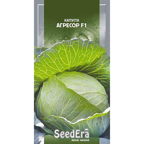 Капуста білокачанна F1 Агресор - дуже продуктивний гібрид середнього періоду дозрівання. Вегетаційний період становить всього 115-120 днів. При дозріванні рослина формується в дуже щільні качани плоско-округлої форми, маса яких досягає від трьох до п'яти кілограмів.