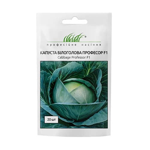 Капуста білокачанна Професор F1 - покращений агресор F1, великі щільні качани, зберігання до 7 місяців. Середньопізній урожайний гібрид для вживання у свіжому вигляді та зимового зберігання. Пластичний, з високою вирівняністю дуже щільних великих качанів. Добре переносить несприятливі погодні умови. Незважаючи на великі розміри, не розтріскуються. Гібрид стресостійкий, не боїться заморозків. Характеризується тривалою лежкістю у сховищах (до 7 місяці) та у полі на ніжках.