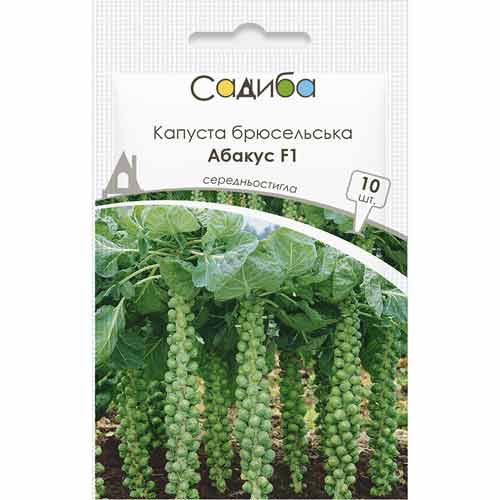 Капуста брюсельська Абакус F1 – надранній гібрид овочевої культури з вирівняними плодами класичного зеленого забарвлення. Для нього характерна висока стійкість при вирощуванні в стресових умовах. Качани можна заморожувати на довгий час або споживати свіжими.