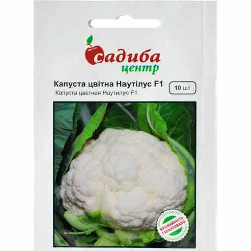 Капуста цвітна Наутілус F1 – гібрид із середньораннім терміном дозрівання. Качани зрізають на 65-75 день. Вони досить великі, середня маса складає 1,5-2,5 кг. Культура не має схильності до переростання та зернистості. Головки компактні, округлі, із білосніжним забарвленням та щільною структурою. Вживаються в свіжому вигляді.