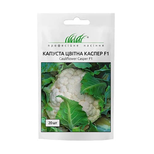 Капуста цвітна Каспер F1 - витривалий гібрид капусти для літнього та осіннього вирощування. Добре витримує високі температури та низьку вологість повітря. Формує білі суцвіття без ворсистості вагою 1,5-2,5 кг. Використовується у свіжому вигляді та для переробки.