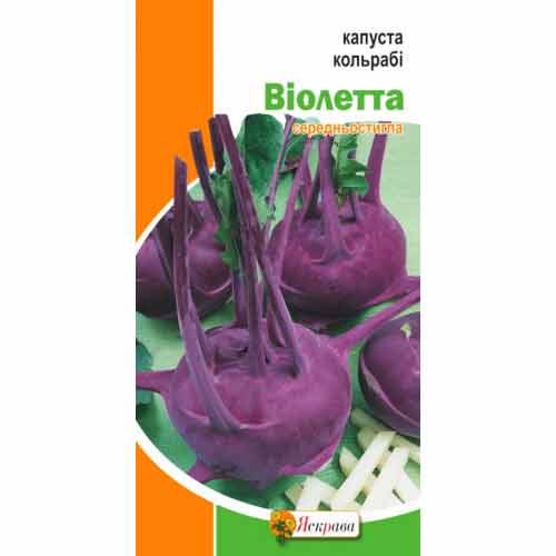 Капуста кольрабі Віолета – великоплідна овочева культура з вегетаційним періодом 110 днів. Відрізняється рясною врожайністю та плескатим округлим плодом незвичного темно-фіолетового забарвлення. Головки великі – діаметром 10 см і вагою 1,5-2 кг.