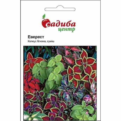 Колеус Еверест – багаторічник, який можна вирощувати в якості кімнатної рослини. У нього дуже різноманітне забарвлення листя – у наборі зібрані сорти з червоними, фіолетовими, пурпуровими, білувато-зеленими та строкатими листовими пластинами. Деякі з них мають з чітку облямівку. Рослини чудово виглядають у поодиноких посадках, а поєднання кущів різних забарвлень є просто неповторним.