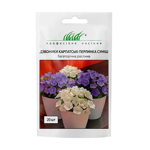 Дзвіночок Перлинка - ніжна квітка з тонкими стеблами. У висоту рослина досягає 30 см, діаметр до 35 см. Квітки великі до 5 см, можуть досягати і 7 см. Цвітіння тривале до 70 днів, починається з червня. Перлинку можна вирощувати як у відкритому грунті, так і в ємностях.