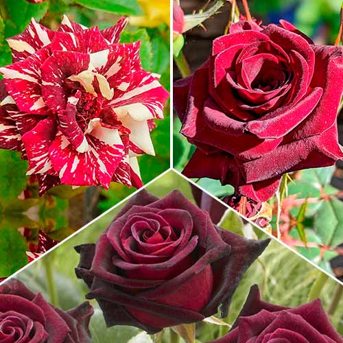 Комплект чайно-гібридних троянд Purple - чарівна добірка для стильної клумби у винно-бордових відтінках. Особливого шарму сортам з цього комплекту надає оксамитова текстура пелюсток. Унікальність тріо в тому, що сорти дуже гармонійно і вишукано поєднуються один з одним. Для тих, хто любить сади в стриманих благородних тонах, це ідеальний вибір.