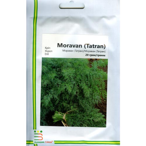 Кріп Мораван - неймовірно щедрий і суперароматний сорт пізньостиглий. Листя густе, темно-зеленого кольору, середньорозсічене, з восковим нальотом. Розетка листя прямостояча, злегка розлога. "Мораван" ідеальний для вживання у свіжому вигляді, а також для сушіння, соління, заморожування та консервування овочів.