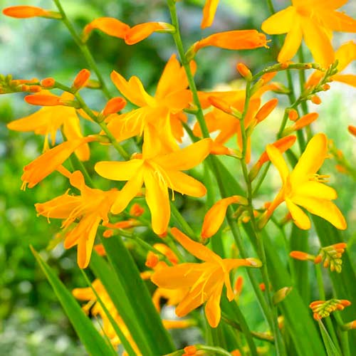 Крокосмія Джордж Девідсон - яскрава, невимоглива у догляді багаторічна рослина. Кущик виростає до 60 сантиметрів, квітконоси прямостоячі. Бутони зібрані в суцвіття, розпускаються по черзі, що забезпечує тривалість цвітіння. Цвіте крокосмія з липня по серпень. Квітки яскраво-жовтого кольору, воронкоподібні, до 4,5 сантиметрів. Аромат квіток у посушливий період нагадує запах шафрану, що і послужило основою назви.