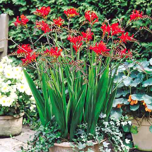 Замовте бульбоцибулини крокосмії Люцифер для літньо-осіннього квітника, відкритої клумби або газону. Квіти відмінно стоять у зрізку (14 днів) і можуть використовуватися як сухоцвіт.