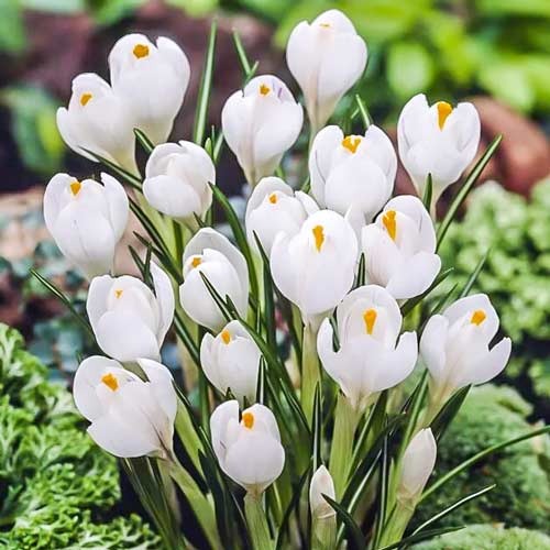 Крокус Жанна Д'Арк - одна з новинок нашого інтернет-магазину. Має унікальну квітку у формі довгастої чашечки, що складається з білосніжних пелюсток і жовтих тичинок. Разом з іншими барвистими квітами, що розпускаються у весняний сезон, вона надає простору трохи загадковості та характерного, казкового вигляду.