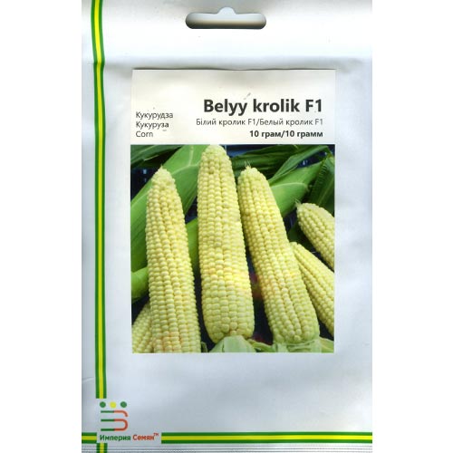 Кукурудза Білий кролик F1 – ранній гібрид кукурудзи солодкого типу Sh3. Вегетаційний період - 72-74 дні. Використовується для свіжого ринку. Підходить для дієтичного харчування. Відмінний вибір для маленьких дітей і людей похилого віку. Початки привабливого молочно-білого кольору, типу Sh3, довжиною більше 22 см. Вміст цукрів - більше 22%. Відмінні смакові якості за рахунок великого вмісту цукрів. Має високий вміст дієтичного волокна.