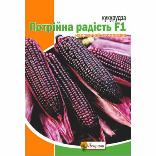 Потрійна радість F1 – новий гібрид кукурудзи цукрової для домашнього та комерційного вирощування. Культура скоростигла та врожайна, збирають на стадії молочної стиглості. Початки відварюють - цей делікатес подобається дорослим та дітям. Зерно кукурудзи f1 заморожують для тривалого зберігання або консервують. Темно-червоні зерна консервованої кукурудзи оригінально виглядають у салатах, використовують їх для прикрашання бутербродів та інших страв. Стиглі качани заготовляють на сухе зерно для переробки на крупу або на фураж.