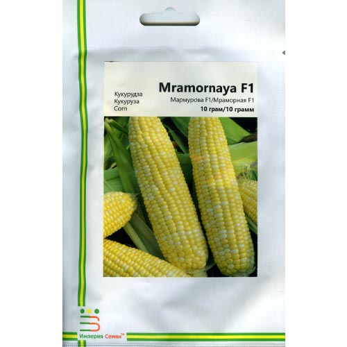 Кукурудза Мармурова F1 – ранній гібрид солодкої кукурудзи. Вегетаційний період – 70-72 дні. Початки мають незвичайний колір: містять 25% білих та 75% жовтих зерен – дуже привабливий товарний вигляд. Більш ніжний, соковитий та солодкий смак кукурудзи. Висота рослини становить до 180 см. Відмінно переносить спеку. Гібрид характеризується стійкістю до негативних умов при вирощуванні та різних захворювань. Довгострокове зберігання без втрати якості та товарного вигляду.