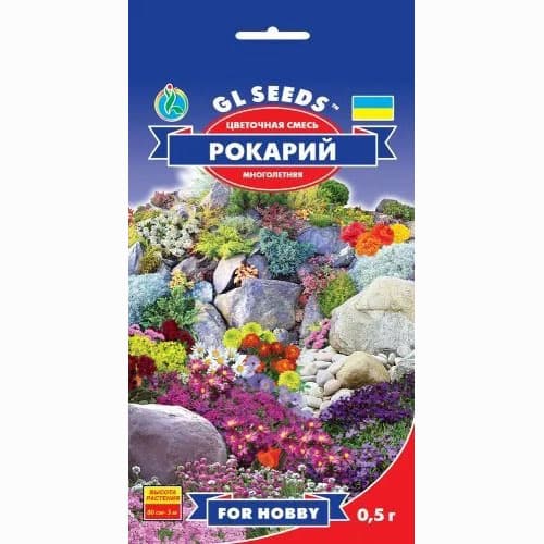 Квіткова суміш Рокарій - декоративна суміш, призначена для вирощування в рокаріях, кам'янистих садах, альпінаріях. Містить низькорослі багаторічники висотою 15-50 см. Рослини невибагливі, посухостійкі. Розсадивши їх, у міру розростання, групами, можна створити дуже ефектну композицію. Ці яскраві кольорові акценти перетворять ваш улюблений куточок на чудовий пейзаж, що тішить ошатним цвітінням з ранньої весни до осінніх холодів.