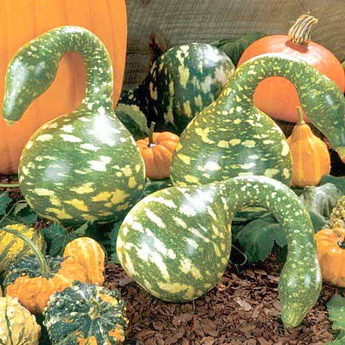 Лагенарія Гусь в яблуках – це рослина з сімейства гарбузових. Таку назву вона отримала неспроста. Плоди нагадують птахів, які визирають з фруктів: внизу овоч округлий, вгору відходить невелика «голівка». Інші імена рослини: горлянка або гарбуз пляшковий. Вага одної в середньому досягає 7 кг. В кулінарії культура використовується для фарширування м'ясом, тушкування, маринування.