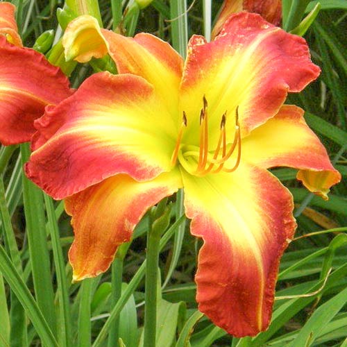 Лілійник Крістмас Із – дивний яскравий багаторічник більше 60 см заввишки. Край пелюсток бархатисто-бордовий, широке горло жовто-зелене. Насиченість забарвлення залежить від місця розміщення – чим більше квітці дістається сонячних променів, тим тон м'якше. Бутони розпускаються в другій половині літа, їх діаметр перевищує 10 см, цвітіння триває близько 20 днів. На одному квітконосі їх може формуватися по декілька штук. Кореневища лілійнику Крістмас Із можна замовити для одиночних та групових посадок, вони добре виглядають у складі міксбордерів та поряд з крупномірами, прикрасять будь-яке водоймище.