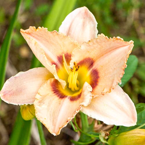 Лілійник Роял Голд – багаторічна кореневищна культура з чудовими бутонами діаметром до 12 см. Свою другу назва – красноднів – рослина заслужила не випадково. Кожна квітка радує своєю красою лише добу, проте загальна тривалість цвітіння сягає трьох тижнів. Пелюстки сорту забарвлені в ніжний помаранчево-абрикосовий відтінок, ближче до горла він переходить в бордовий, а сама серединка – сонячно-жовта. Висота рослини –80 см, цвітіння настає в другій половині літа. Квітка підійде для декорування стін споруд та водоймищ, прекрасно виглядатиме в квітниках.