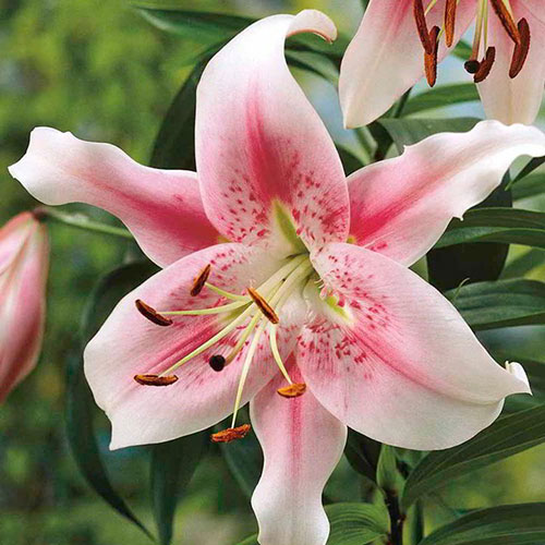 Лілія Анастасія може цвісти у білому, рожевому, фіолетовому, помаранчевому кольорі. Найчастіше відтінок розбавляється цяточками або смужками. Розташовані вони всередині листочків.