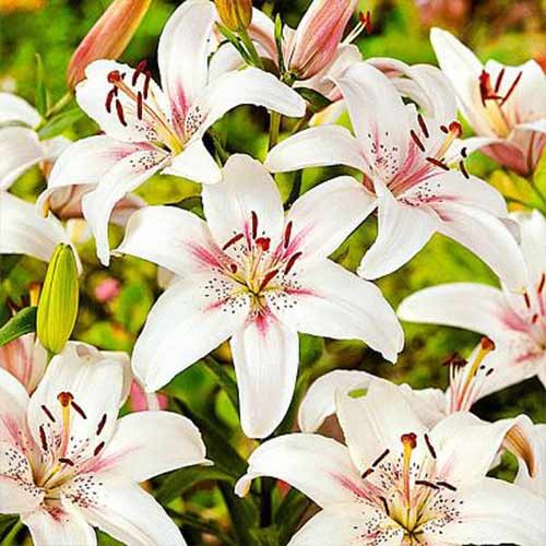 Лілія азіатська Марсель - це яскравий цибулинний багаторічник з величезними зірчастими квітами сніжно-білого відтінку. Внутрішня частина лілії з рожево-вишневими цяточками, іноді на білосніжних пелюстках розливається ніжний рум'янець. Сорт має приємний солодкий аромат. Висота міцного стебла варіюється від 80 до 100 см. Термін цвітіння - з липня по вересень.