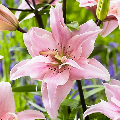 Гостя з азіатських країн з ніжно-рожевими махровими пелюстками й бордовими «веснянками» – крапом в центрі. Висота рослини – до 110 см, діаметр квіток – 15-17 см.