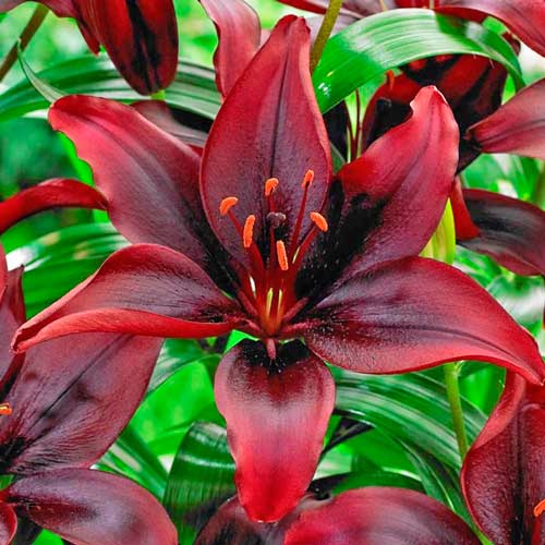 Лілія азіатська Мапіра (Lilium Mapira) – витончена азіатська красуня темно-бордового відтінку з майже чорним переливом. Її висота досягає 100-130 см, а діаметр квітки – 18 см. На одному стеблі у червні – липні розпускаються до 5-15 бутонів, вони мають ледь помітний аромат. Гібрид можна посадити окремо чи у поєднанні з низькорослими або контрастними за кольором квітами. З нього виходять чудові букети, які не в’януть у вазах на протязі двох тижнів.