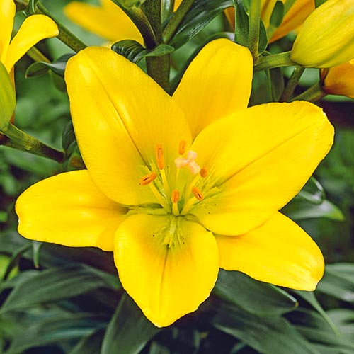 Лілія Голден Тайкун - витончений сорт, чиї ароматні квіти ефектно прикрасять будь-який сад. Велика жовта квітка з темними тичинками стійка до низьких температур і рідко хворіє. Цвіте з червня по серпень. У цей період стебла завдовжки 100 см вінчають яскраві кубкоподібні квітки, що виділяють солодкий аромат. Підходять для прикраси міксбордерів, клумб і газонів. Особливо гарні на тлі вічнозелених дерев і чагарників.