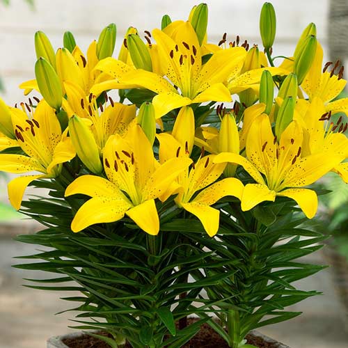 Лілія Лемон Пікс – це азіатський гібрид дуже незвичайного, яскраво-жовтого кольору з темно-червоними крапочками-веснянками в центрі. Сорт невисокий, тому при посадці на загальну клумбу його бажано розташовувати ближче до бордюру, хоча Лемон Пікс так само ефектно виглядає і в одиночній посадці.