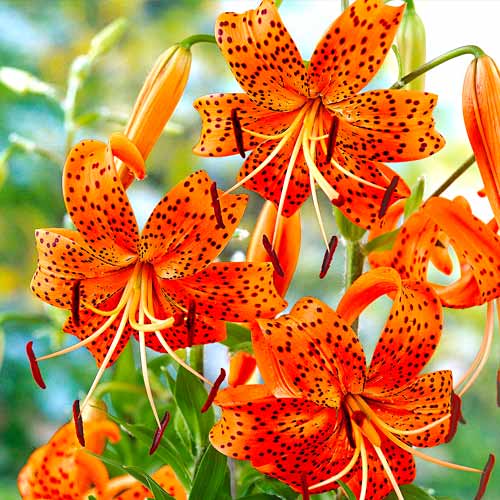Лілія тигрова Тігрінум Спленденс - це неймовірно красивий сорт цибулинної рослини, з високою зимостійкістю. Пелюстки великих квітів красиво вигнуті, оранжевого кольору з яскравими червоними цяточками. Тичинки великі з коричневими пильовиками. На кожному пагоні формується в середньому 10 бутонів. Цвітіння тривале, в цей час повітря на ділянці наповнюється приємним ароматом. Рослина невибаглива, потребує мінімального догляду.