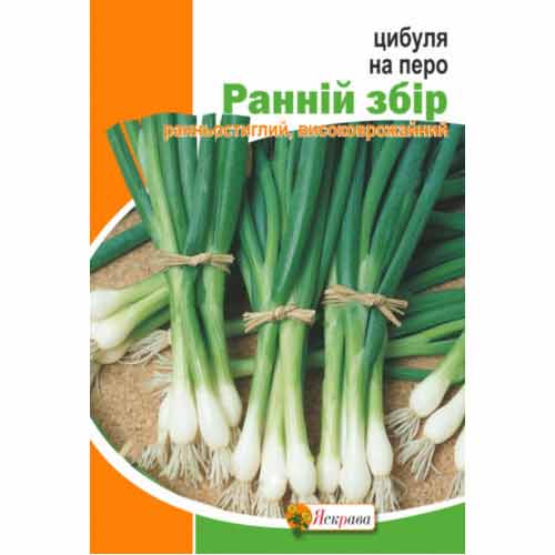 Цибуля на перо Ранній збір – чудовий сорт, який дає швидкий і високий урожай. Велика цибулина формує компактну розетку ніжної зелені. Перо в міру гостре, соковите, смачне. Діапазон застосування не обмежується салатами. Його можна додавати в соуси, фарш, начинку для пирогів, маринади та перші страви. Зелень зрізають, коли листя досягне висоти 20-30 см.
