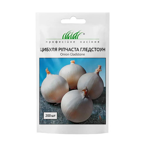 Цибуля ріпчаста Гледстоун – овочева культура з терміном повноцінного дозрівання 100 діб. Великі округлі цибулини покриті гладким білим лушпинням. Коренева система та перо насиченого темно-зеленого кольору добре розвинені. Білосніжний м'якуш соковитий, приємно хрусткий, із легкою пікантною гостротою. У період зростання необхідно вносити мінеральні добрива.
