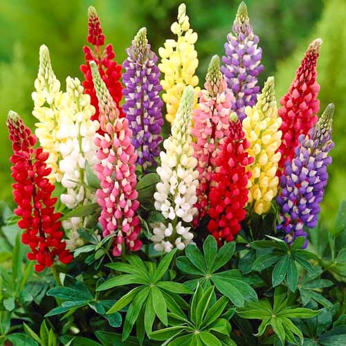 У суміші представлені сорти з різним забарвленням – червоним, білим, пурпуровим, фіолетовим, рожевим і малиновим. Щільні стрункі рослини пірамідальної форми в висоту не перевищують 0,7 м. Досить невибаглива культура, яка не потребує складного догляду та є морозостійкою. Замовте коріння люпину, мікс – ошатні та невибагливі рослини цвітуть із кінця весни до початку осені!
