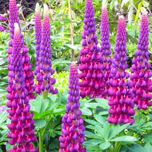 Люпін Пурпл (Lupinus Purple) – розкішний сорт з пурпуровими свічками суцвіть, здатний оживити будь-який куточок саду на сонці або в напівтіні. Квітконоси піднімаються на висоту до 90 см. Перша хвиля цвітіння починається в червні і може повторюватися іще двічі, якщо видаляти квітконоси на початку утворення насіння і внести будь-яке комплексне добриво для садових квітів. Рослина абсолютно не вимагає догляду, зростає на будь-яких садових ґрунтах. Багато років поспіль не втрачає декоративності, має високий потенціал для розмноження насінням.