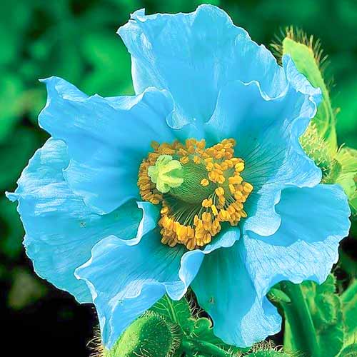 Мак гімалайський Блакитний дає на високому стеблі дивовижної краси квітку діаметром 15−17 см. Опукла серцевина оточена дрібними яскраво-жовтими тичинками. Колір пелюсток — блакитно-блакитний. Незважаючи на незначний вміст опійних речовин у декоративних сортах маку, вирощувати в саду більше 10 рослин забороняється законом України (стаття 106−2 КУпАП).