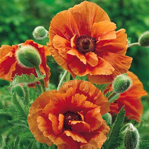Мак східний Харвест Мун – дивна багаторічна квітка, яка поєднує в собі розкіш яскраво-червоного кольору й ніжність пелюсток. Висота культури сягає 90 см, міцні квітконоси вінчають махрові бутони діаметром до 18 см. Вони забарвлені в насичений червоно-морквяний відтінок, серединка – темна. Квітки розпускаються в кінці травня – на початку червня. Пік декоративності триває близько 2 тижнів. Відцвітаючи, бутони «залишають» після себе декоративні коробочки з насінням. Замовляйте саджанці східного маку Харвест Мун й даруйте своїй ділянці яскравих фарб!