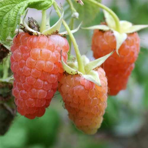 Малина ремонтантна Дабл Оранж - високоврожайний новий сорт, що дає плоди до глибокої осені. Ягоди конічної форми, бурштинового кольору з рум'яним бочком. Смак ніжний, солодкий, аромат яскраво виражений. Маса ягоди варіюється до 3,5 грамів. Плоди мають універсальне призначення - придатні для вживання у свіжому вигляді, переробки, консервації, заморозки, сушіння.