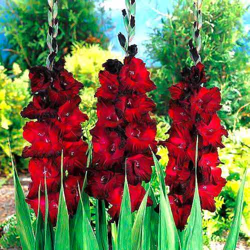 Шикарний сорт з рубіновими квітками діаметром 14-15 см. Хвилясті пелюстки на краях темніші, а бутони, що не розпустилися, здаються чорними. Рослина висотою 100-120 см радує цвітінням практично все літо. Гладіолус красиво виглядає в груповій посадці на клумбі, в букеті та у вазі з водою. Замовте цибулини гладіолуса Блек Джек в інтернет-магазині «GradinaMax», і кожного року в вашому саду будуть розпускатися розкішні бутони винного кольору.