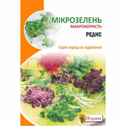 Посів проводять цілий рік, при цьому не потрібні грунт і добрива. Насіння поміщають в контейнер, рівномірно зволожують. Після проростання і розкриття сім'ядоль можна починати збирати урожай. Сходи зрізають, промивають, можливо нетривале їх зберігання в холодильнику. Купуйте насіння мікрозелень Редис з доставкою для вирощування в домашніх умовах.
