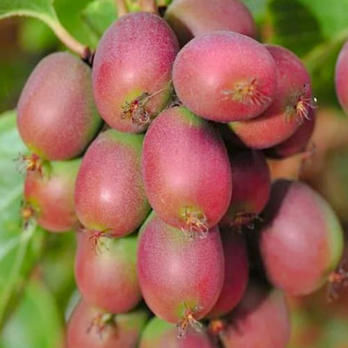 Міні-Ківі (актинідія) Ананасна - червоноплідний, рясно плодоносний сорт з овальними ягодами завдовжки близько 3,5 см і 2,5 см завширшки, дозрівають наприкінці вересня, з їстівною шкіркою. Смак ніжний, солодкий. Пагони в'ються. Плодоношення починається на 3-4 рік. Сорт витримує морози до -28°C, але влітку потребує теплого сонячного, захищеного місця, на вологому, добре дренованому, родючому ґрунті. Для запилення і зав'язі плодів необхідно обов'язково посадити поблизу чоловічу рослину цього виду, наприклад чоловічу Вейкі. Жителям північних широт часом прикро, що в їхньому саду не ростуть екзотичні теплолюбні фрукти, такі як ківі. На допомогу садівникам приходять чудові зимостійкі актинідії. Багато їхніх сортів спеціально виведені для короткого північного літа. Вони не тільки не поступаються ківі за смаком, а й, навпаки, перевершують заморські ягоди за вмістом цукрів і вітамінів. Є актинідії зі строкатим декоративним листям: посадивши їх у себе на ділянці, ви не тільки зберете врожай смачних і корисних ласощів, а й прикрасите сад. Проводити обрізку актинідії краще пізньої осені або взимку (перед початком вегетації), а також влітку після часткового здерев'яніння нових приростів. Весняна обрізка виключена, тому що будь-яке пошкодження ліани викликає сильний "плач" і навіть може послужити причиною її загибелі. Взимку, перші 2-3 роки після посадки, ліани знімають зі шпалер, укладають на землю і вкривають торфом, сухим листям і ялиновим гіллям. Дорослі рослини зимують без укриттів.