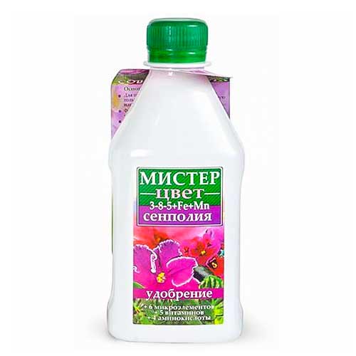 Містер-Цвіт для фіалок - комплексний препарат, який використовують для підживлення всіх геснерієвих культур (в тому числі фіалок). Підвищує стійкість рослин до хвороб і шкідників. Продовжує цвітіння, робить листя і квіти більш насиченими і яскравими.