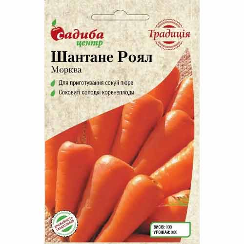 Морква Шантане Роял – високоврожайний коренеплід масою до 200 г у формі конуса з тупим кінчиком. Колір плодів яскраво-помаранчевий, м'якуш солодкий, хрусткий, містить багато вітамінів. Сорт не схильний до розтріскування та викривлення коренеплодів.