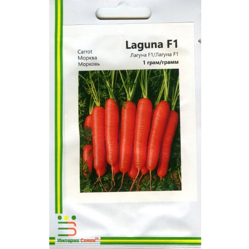 Морква Лагуна F1 - суперранній гібрид моркви. Придатна для посіву ранньою весною, влітку. Підходить для миття, переробки та пучкової продукції. Коренеплоди циліндричної форми, довжиною 18-24 см, вирівняні, без зелених плічок. Забарвлення м'якоті та серцевини – яскраво-оранжеве, через високий вміст каротину. Смакові показники відмінної якості. Стійка до ламання та розтріскування. Хороша товарність, тому відходи практично відсутні.