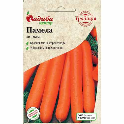 Морква Памела – відмінний середньоранній сорт. Вегетаційний період 100-110 днів. Коренеплоди циліндричні, 18-20 см завдовжки, соковиті та смачні. Сорт відрізняється високою врожайністю та універсальністю призначення: для споживання у свіжому вигляді, переробки та зберігання.