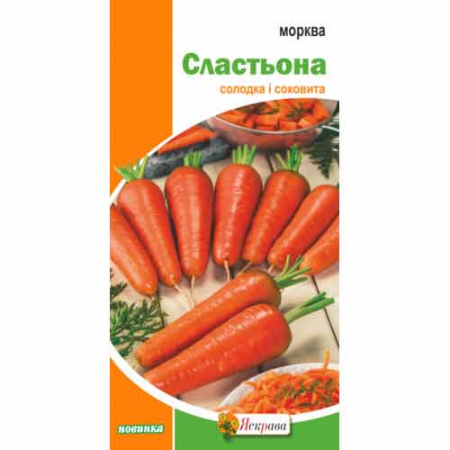 Морква Сластьона - пізньостиглий сорт дуже солодкої моркви. Коренеплоди яскраво-помаранчевого кольору, рівні, з округленим кінчиком, м'якоть - соковита і солодка, майже без серцевини, маса коренеплоду 100-160 г, довжина 15-18 см. Назва обрана невипадково, вміст цукру в коренеплодах сягає 8,6 %. Морква солодка і корисна, за вмістом каротину їй немає рівних. Одна невелика морквина у свіжому або вареному вигляді містить 2 добові дози вітаміну А.
