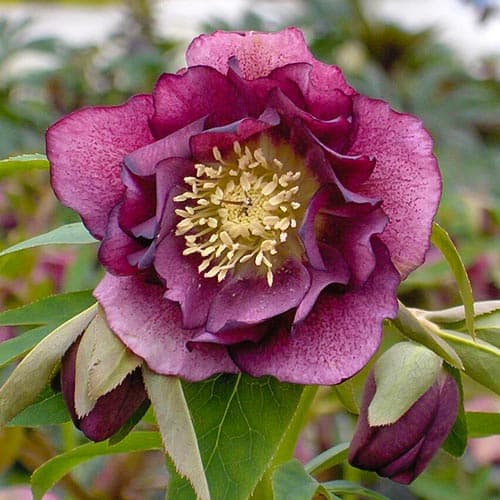 Морозник Дабл Еллен Ред – шикарний представник унікальної, надзвичайно ошатної серії з сімейства жовтецевих. Величезні розкішні квітки відтінку королівського пурпуру на довгих квітконосах надають йому надзвичайної декоративності.