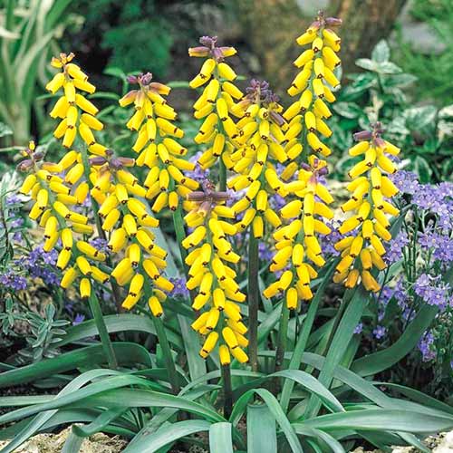Мускарі Макрокарпум – декоративна цибулинна культура, що належить до сімейства asparagaceae. Інші назви цього різновиду – «мишачий гіацинт» або «гадюча цибуля». Рослина рання, квітне навесні, слідом за первоцвітами. Бутони виділяють звабливий мускусний аромат, за який культура й отримала свою назву.