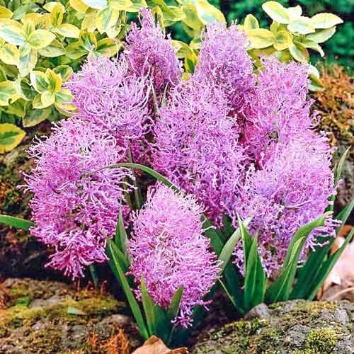Мускарі Плюмозум - рідкісний, оригінальний сорт з кучерявими квітками, який має неперевершений тонкий аромат. Рослина невисока, зазвичай досягає 20 см. Термін цвітіння - з початку червня. Дрібноцибулинну багаторічну рослину використовують для декорування садових квітників, прикраси альпінарію і садів патіо. Незважаючи на свій ексцентричний вигляд, мускарі Плюмозум дуже простий у вирощуванні і швидко розростається. Красиво виглядає в посадках у романтичному, сільському та англійському стилі.