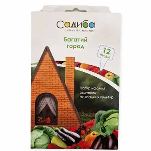 Набір Багатий город - готова суміш найпопулярніших овочів, які обов'язково треба виростити на дачі. До набору входять сорти та гібриди, перевірені часом, які отримали високі оцінки дачників.