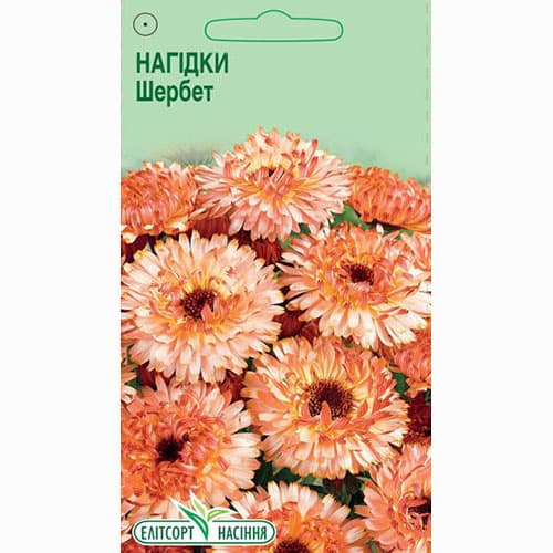 Календула Щербет - незвичайно забарвлені двокольорові суцвіття-кошики. Починає цвісти вже на висоті 10 см. У всіх частинах рослини містяться речовини, які мають лікувальні властивості. Календула – рослина вкрай невибаглива у культурі. Холодостійке, світлолюбне, добре розвивається на різних типах ґрунтів. Цвітіння починається через 45 днів після посіву. Використовується в балконних ящиках, на зрізку, для груп, рабаток, бордюрів, де вона поєднується з агератумом, сальвією, дельфініумом, рудбекіями, цинніями, і як лікарська та овочева рослина