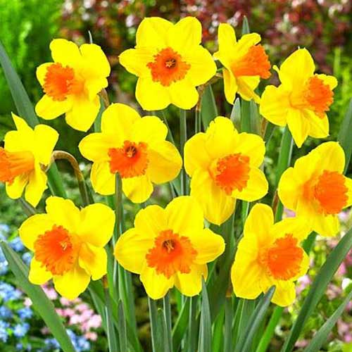 Нарцис великоквітковий Пімпернел – чарівний цибулинний багаторічник з оригінальними квітами помаранчево-жовтого забарвлення. Широкі пелюстки пофарбовані в інтенсивний жовтий колір, а коронка просто сліпить апельсиново-помаранчевим. Це яскравий і ефектний сорт для декорування клумб і вирощування на зрізання.