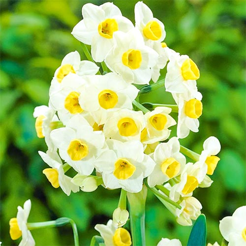 Нарцис Аваланш (Narcissus Avalanche) – найпопулярніший у світі тріандрусовий сорт, який відрізняється великою кількістю бутонів. На кожному квітконосі їх може бути 15 і більше, тому з однієї квітки виходить цілий гарний запашний букет. Квіти білі з жовтими серединками, 10-15 цибулин достатньо для формування розкішної клумби. Рослина придатна для вигонки, нею часто прикрашають інтер’єри. Вона доречна на передньому плані клумб або у невеликих групах. Цвітіння починається з другої половини весни, висота квітки не перевищує 40 см.