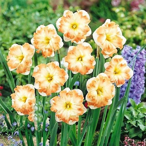 Нарцис спліт-корона Кум Лауд - На тлі порцеляново-білих пелюсток оцвітини виділяється великий, помаранчевий, плоский віночок з хвилястим краєм. Висота квіткових пагонів досягає 35 см. Незвичайні квіти розкриваються з квітня по травень і довго залишаються незмінними. Ідеально підходить для прикраси клумб, доріжок, бордюрів або клумб на присадибних ділянках, а також балконних горщиків і ящиків. Квіти нарциса з відмінністю мають ніжний аромат і довго зберігаються в букеті.